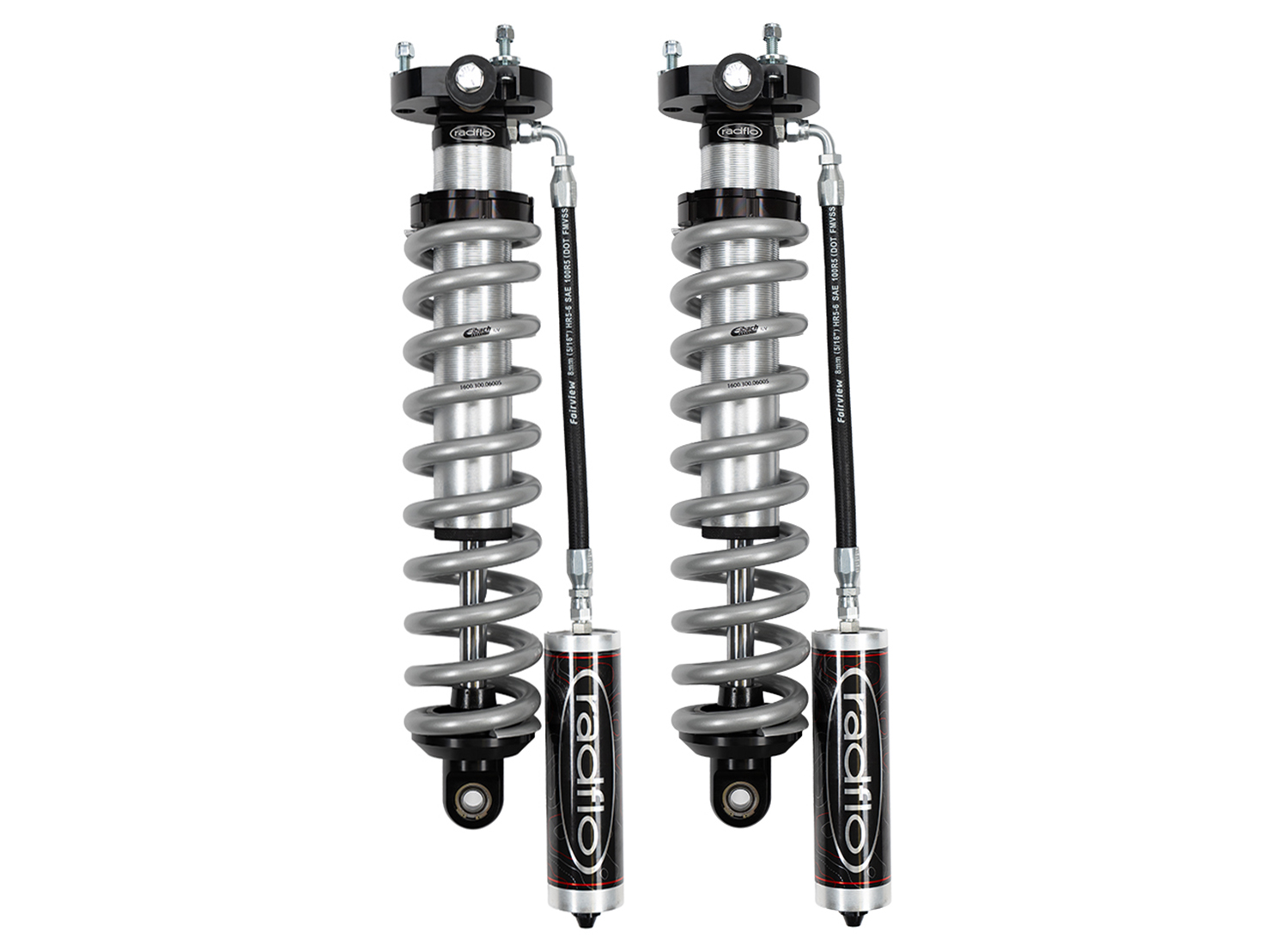 Radflo OE Replacement 2.5 Front Coilover Kit Toyota Hilux 2005+ With Remote Reservoir Extended For Use With Aftermarket Upper Control Arms